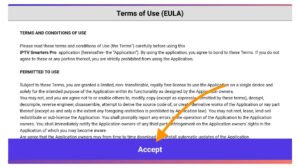 When launching it for the first time you will be asked to agree with their user agreement so simply click on the Accept button.