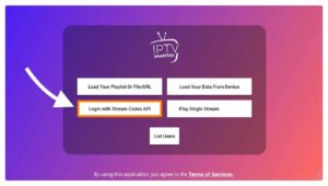 From the next screen, you will notice multiple options to Log Into the Smarters Pro. Now you need to choose Login with Xtreme Codes API which is the fast method.